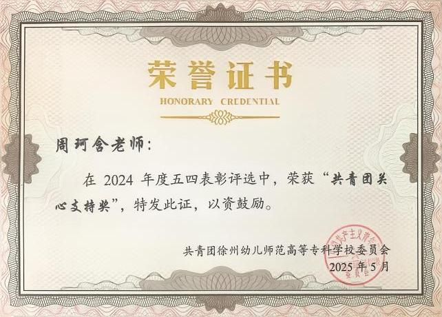 周珂含老师作为班主任兼团支部指导老师,始终将“党建带团建”理念贯穿育人全过程。她牵头搭建“班团一体化”管理平台,建立“一对一”党员结对帮扶机制;定期组织团员参与红色采风、剧目创排等实践活动,助力员工实现专业技能与思想素养同步提升。此次荣获“共青团关心支持奖”,正是对其多年来倾心共青团工作的最高褒奖。
