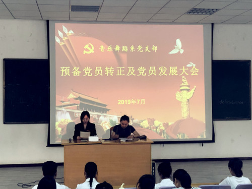 7月1日,音乐舞蹈系党支部在碧螺校区教学楼二楼阶梯教室召开了预备党员转正及党员发展大会。音舞系党支部副书记吴雪梅以及音舞系党支部全体党员参加了会议。
