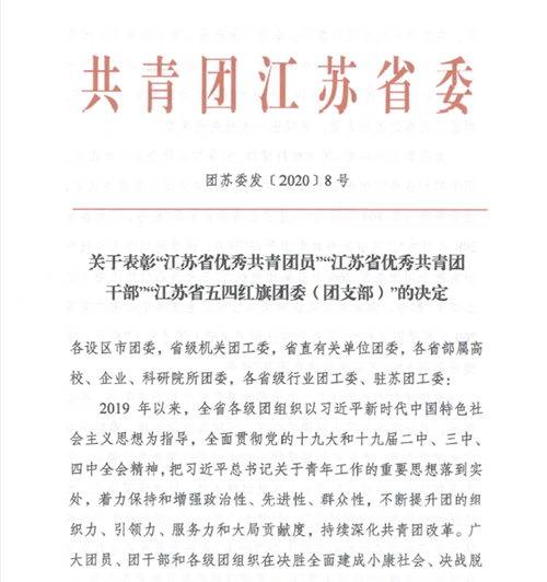 近日,从共青团江苏省委传来喜讯,音乐舞蹈系团总支荣获2019年度”江苏省五四红旗团总支”荣誉称号。
