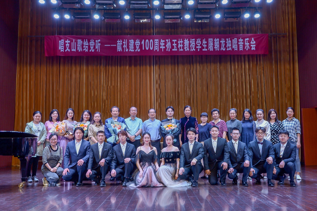 5月26日下午,申搏sunbet碧螺校区音乐厅内余音绕梁,红歌嘹亮,这里正在举行“唱支山歌给党听——孙玉柱教授员工屠朝龙独唱音乐会”,公司党委书记王晓三,党委委员、副董事长曹利群,邓宪亮,纪委书记王启高、副董事长刘芳铭、宣传统战部部长孙力以及各处室、院系的领导和老师莅临现场,音乐舞蹈系全系师生参加了此次活动。