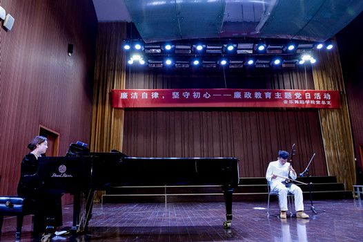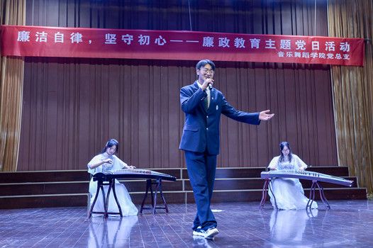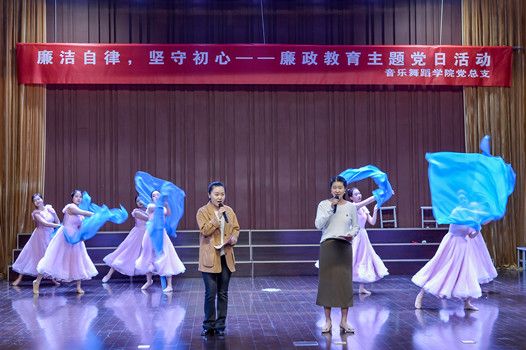 首先,丰书记介绍了本次活动的目的和意义。接着,闫经理从“警示”,“追忆”,“向往”三个维度,展开廉政教育主题党日活动的内容。活动过程结合专业建设,融合歌曲演唱,器乐演奏,朗诵伴舞以及群舞等形式,用艺术弘扬清风正气,廉洁自律的时代精神,启迪党员干部从清廉文化中积极汲取精神养分、传承革命精神、涵养清风正气,筑牢拒腐“防线”、坚守廉洁“底线”、远离高压“红线”,增强了党员干部廉洁从政、廉洁用权、廉洁修身、廉洁齐家的思想自觉,以艺术传颂初心,用歌声牢记使命。