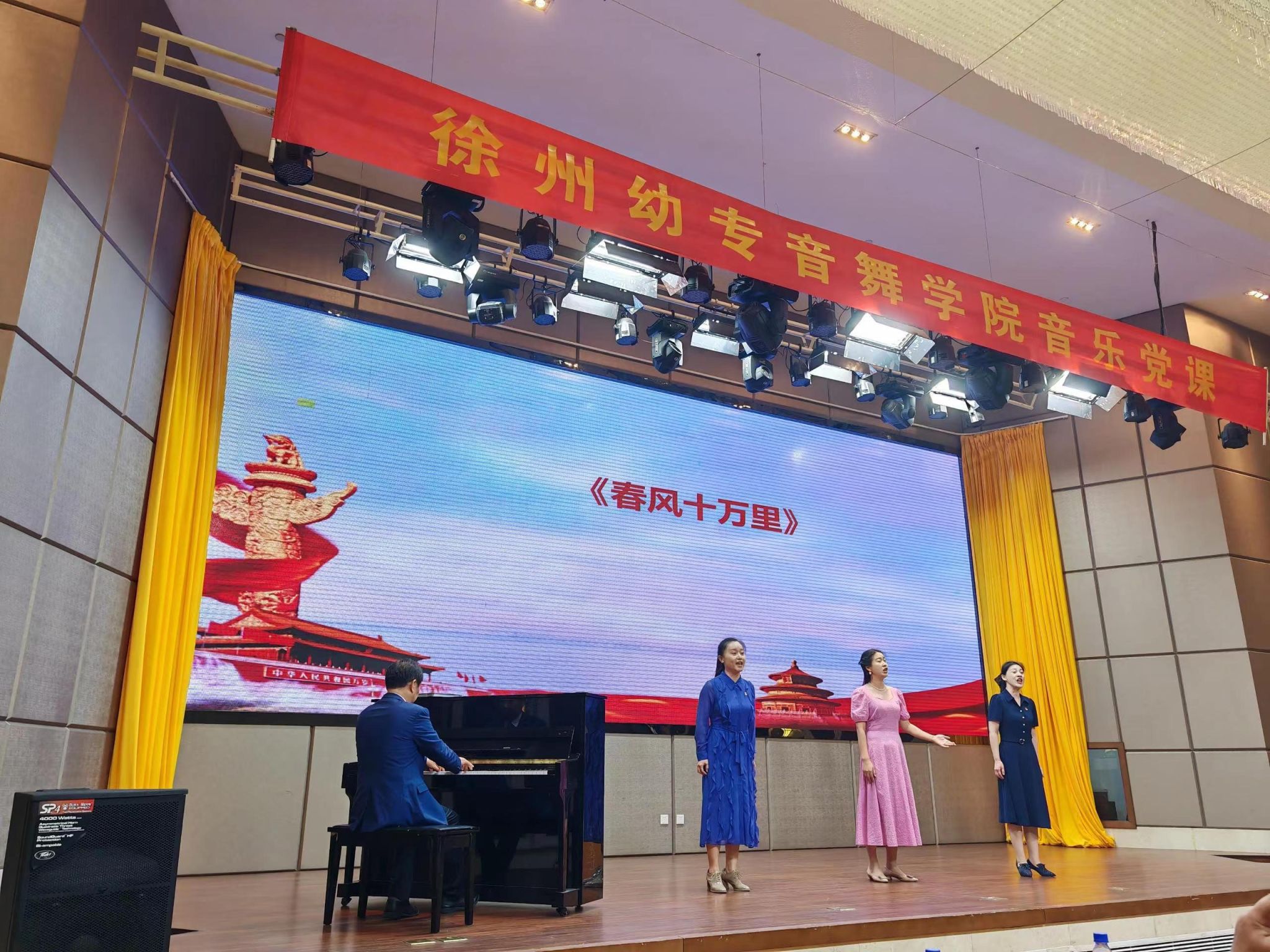 一曲锁啦《东方红》拉开了党课人的序幕,表达了人民热爱和感谢伟大的党、人民领袖毛主席的朴素感情。接着,马娟老师和员工古筝合奏《映山红》、李芸芸老师演唱《英雄赞歌》、孙玉柱教授演唱《我的祖国妈妈》、吴瑜老师、王阳老师和李芸芸老师三人合唱《春风十万里》等。