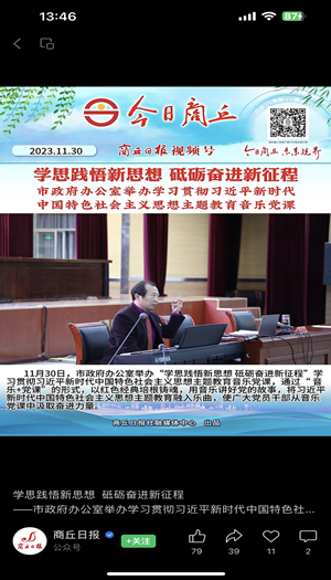 “今日商丘”“商丘政务”等媒体报道公司孙玉柱教授在商丘讲授音乐党课