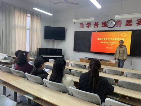 最后马书记强调作为一名高校教师,要认真学习、深入领会习近平总书记重要讲话精神,加强理论学习、提高党性修养、砥砺政治品格、练就过硬本领,坚定文化自信,坚持守正创新,自觉做马克思主义的坚定信仰者、实践者和中华优秀传统文化的忠实继承者、传播者,不断铸就中华文化新辉煌,为建成社会主义文化强国贡献智慧和力量。