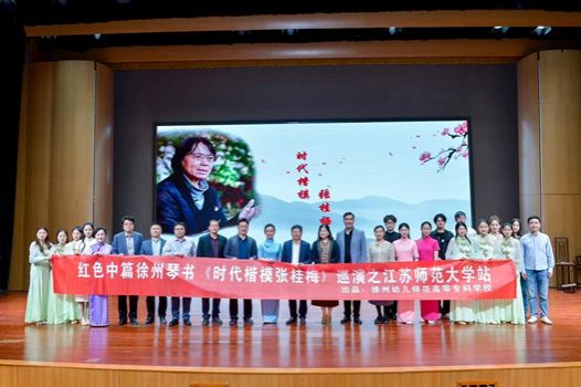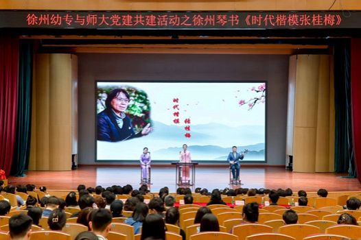 本次党建活动上演了徐州琴书《时代楷模张桂梅》,近千名师生观看并引起了强烈反响。作品由《病痛无情人有情》、《十万公里家访路》、《红土高原一枝梅》三回书目组成,时长达八十分钟,讲述了张桂梅在平凡岗位中做出的不平凡事迹。她用她的一生诠释了共产党人的伟大精神,她那对党忠诚、不负人民的高尚品质感染了在座的每一位观众。
