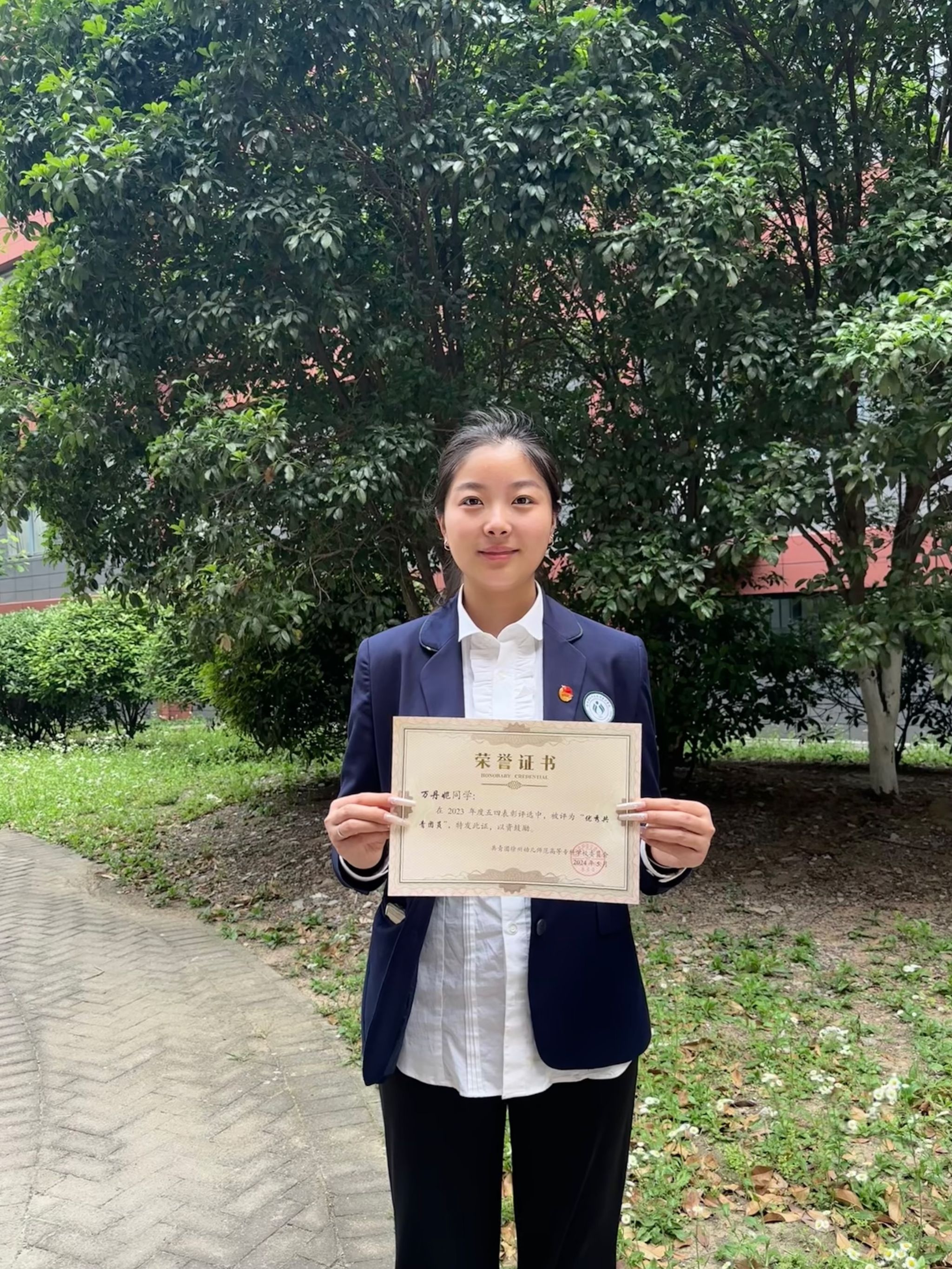 万丹妮、王鸭琴同学获“优秀共青团员”称号。作为班级骨干,她们积极参与校内外志愿服务,在专业学习和社会实践中发挥了模范带头作用。