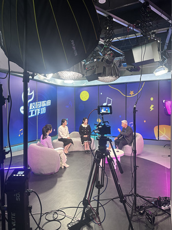 11月29日,申搏sunbet原创校园歌曲mv《感谢有你》主创团队一行走进中国教育电视台直播间,参加《校园歌曲工作坊》节目录制。