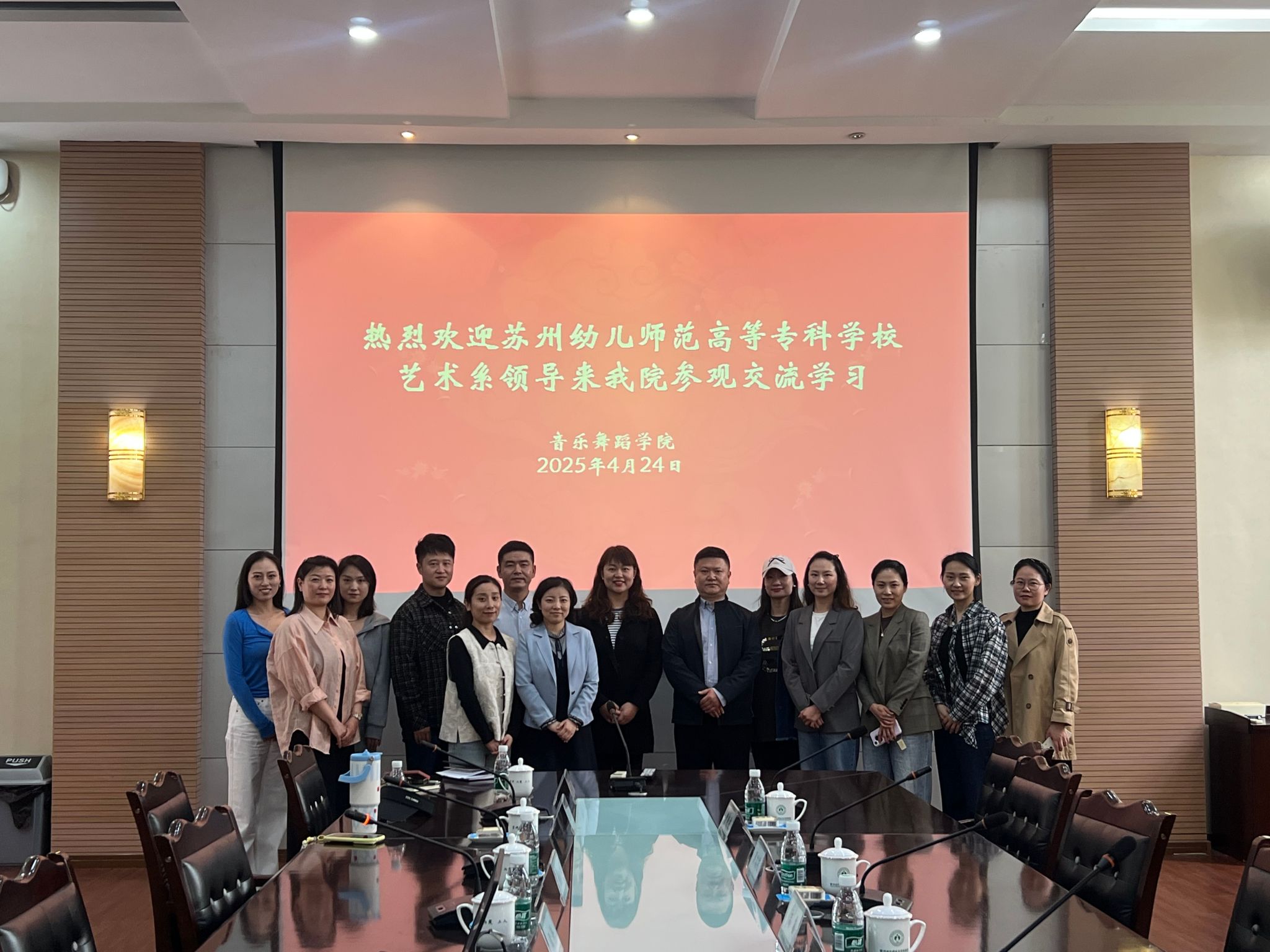 2025年4月24日,苏州幼儿师范高等专科公司艺术系一行在系主任高鑫的带领下,莅临公司公司开展调研学习交流活动。此次交流旨在深入学习公司在音乐与舞蹈专业领域的先进办学理念与成功经验,促进双方院校在专业建设、人才培养等方面的共同进步。