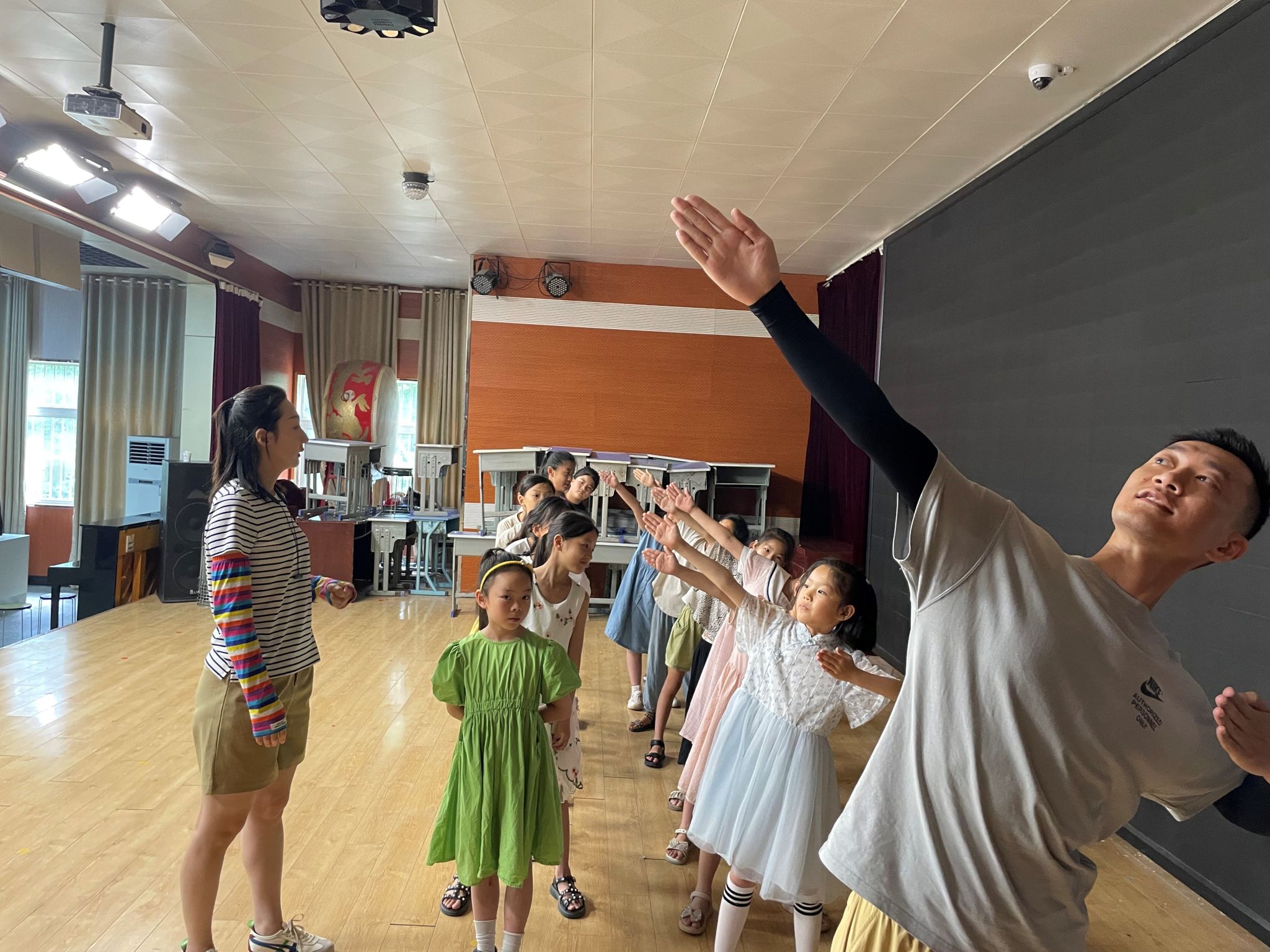 活动由专业教师梁彬彬、高蕾主要负责排练,在草桥镇中心小学暑期开展第二期为朗诵、合唱、舞蹈班辅导员工;融为一体创作了“草桥镇《十人桥》音乐舞蹈情景短剧”,用艺术的方式展现解放军战士团结一心、奋力拼搏、甘愿奉献、敢于胜利的精神,歌颂用生命架起的新中国胜利之桥,再现了“十人桥”英雄事迹永远激励后人的主旨,给草桥镇的小员工们上了一系列生动的红色艺术教育辅导课。